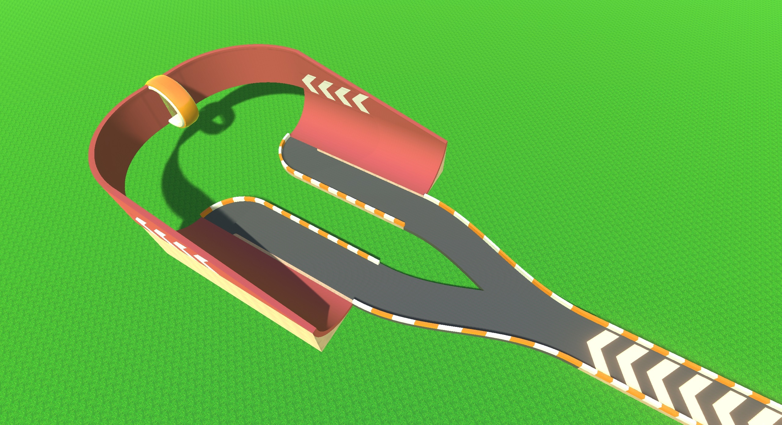 First up we have these split S-Bends. We had a split-S bend before, as part of the "covered glass roads" track pieces, but that one was tilted at an angle and only had one special barrier type. Now we get 3 flat S-Bends in the regular road style :)