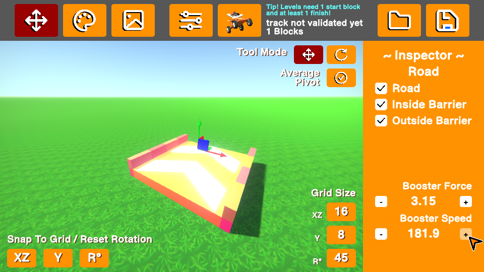 There's some off-grid blocks for people who like to work with special curves, there's some tube crossroads, and there's a new "Trasher" block that will remove dynamic objects from the track!
