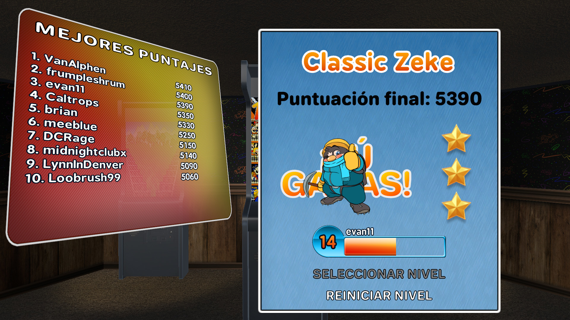 Virtual Cabinet Support: Zeke's Peak can now run on your virtual cabinet, with access to all levels using dual joysticks and a single button, plus optional support for a coin slot to add credits. Relive the classic arcade experience with more realistic physics and controls, the option to toggle various digital enhancements on or off, and a local high score to compete with your friends and family.