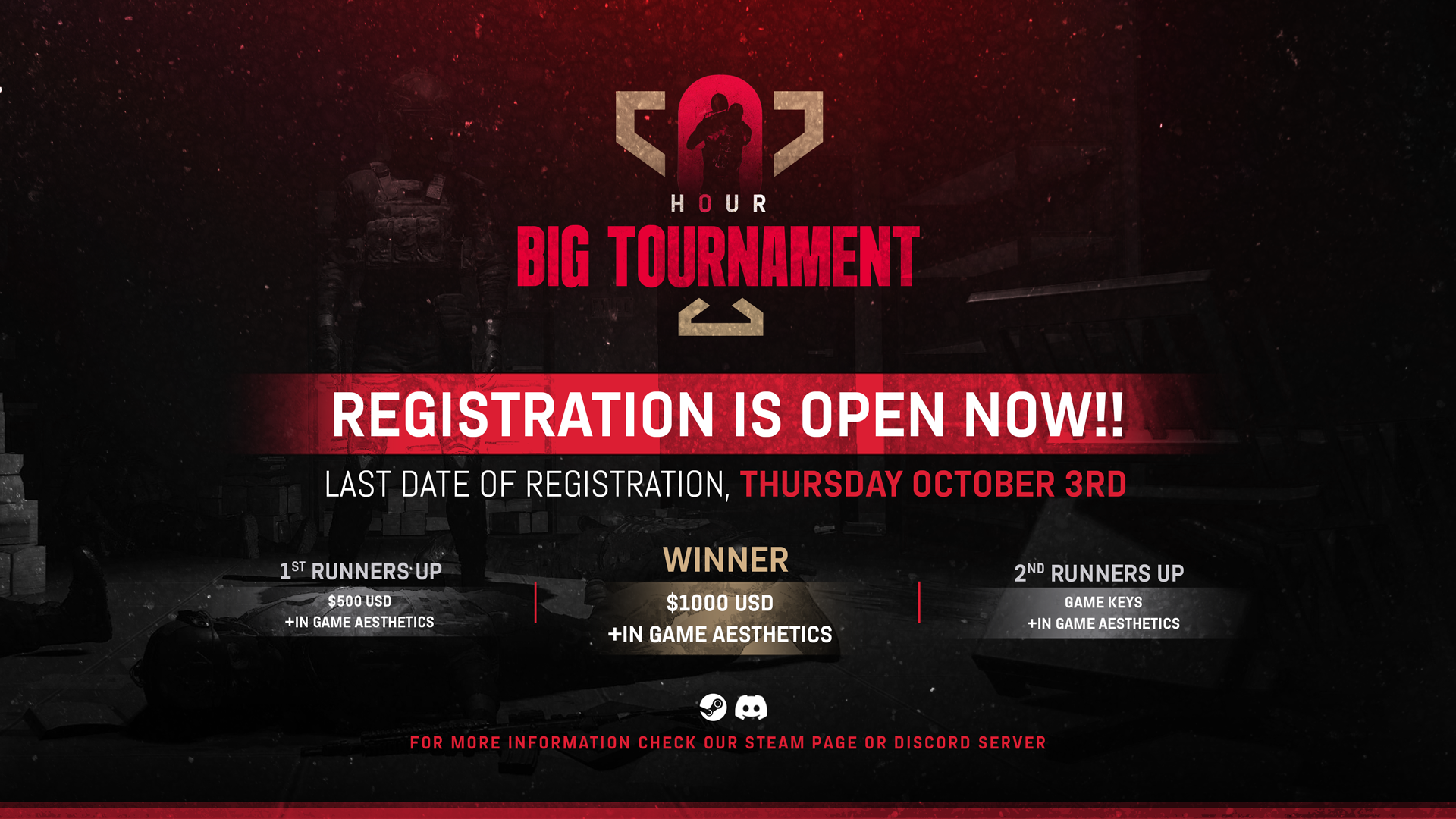 The tournament will be streamed live on our streaming platforms (Twitch, Steam, and Discord).