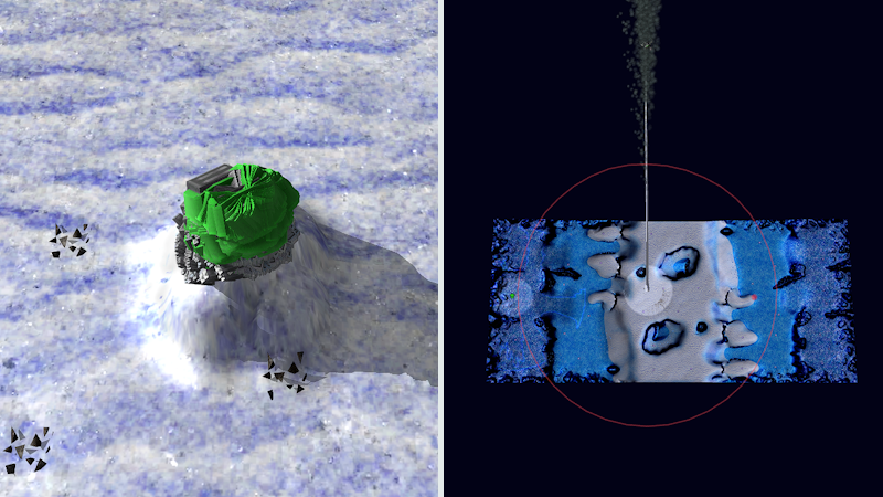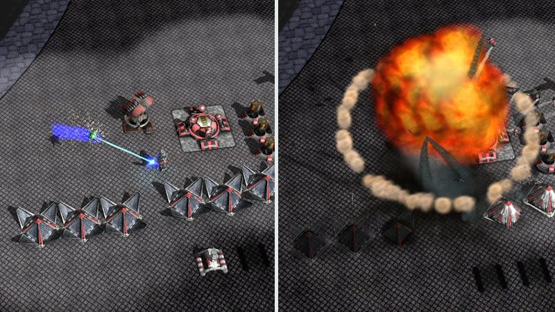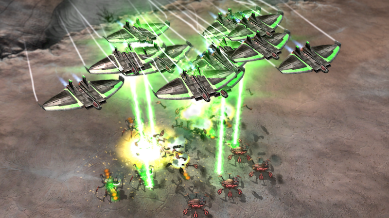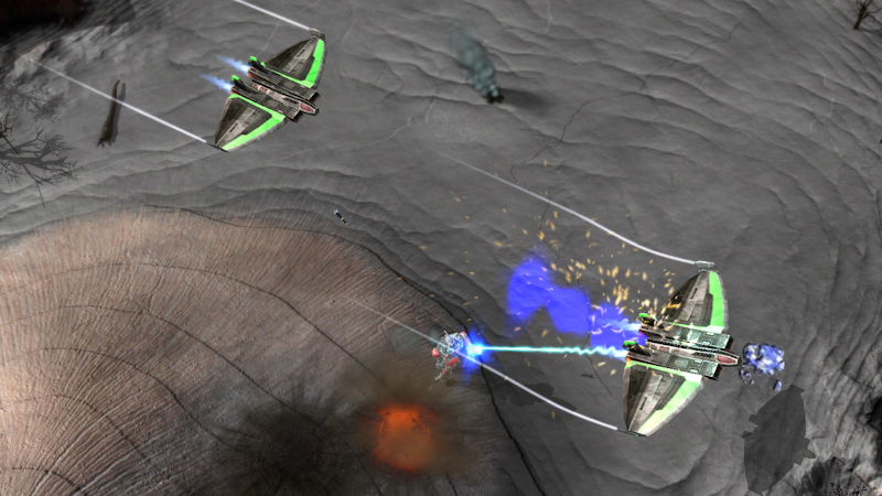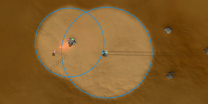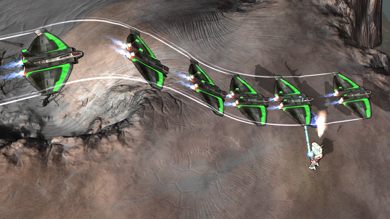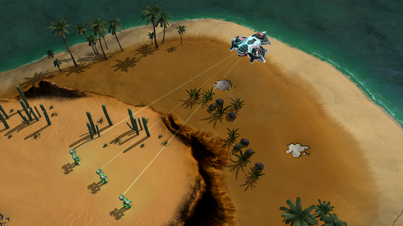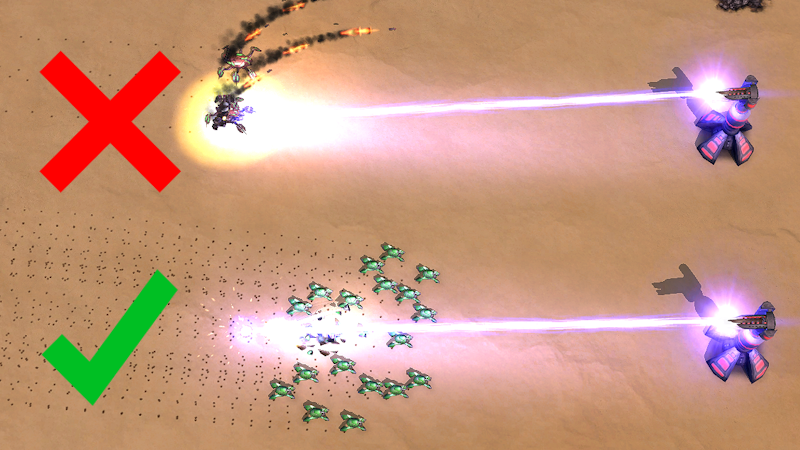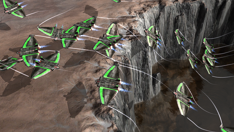 Nimble bot movement also supports the bot focus on special abilities: just imagine trying to manoeuvre cloaked vehicles through the enemy base, or to maintain an overlapping formation of shielded vehicles. These abilities also encourage players to use bots on large open maps, since vehicles are often limited to more straightforward, brute force, approaches. Vehicle armies can always benefit from the support of bots, as sometimes players need some cloaked spotters or a bit of gravity manipulation.