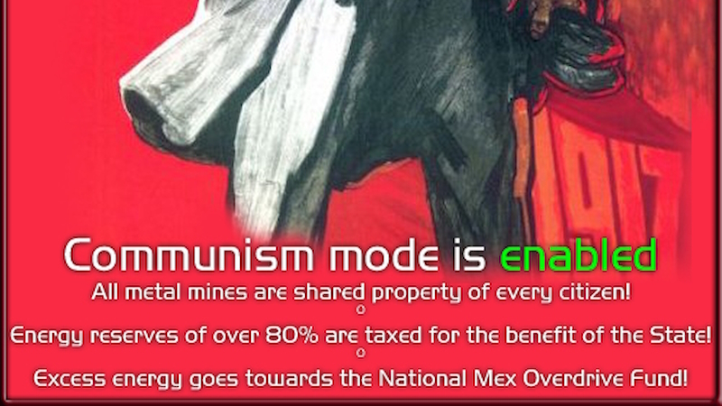 It is worth mentioning that I snuck an assumption into communism: that players want to cooperate. What if people want to keep their income to themselves? This gets at the core of the design: we assume that the team wants to cooperate, teamwork is the default. If players want to argue and destroy each other's buildings, then they might not find support for these actions in the UI. There is also a bit of a paradox here, as anyone who has played a team game with a range of skill levels can tell you: who owns what is actually very important. But instead of trying to judge the worth of each player, we opted to make a game where part of the skill is in being a good teammate, rather than rolling over the weaker members on your team as you grow your own personal empire.