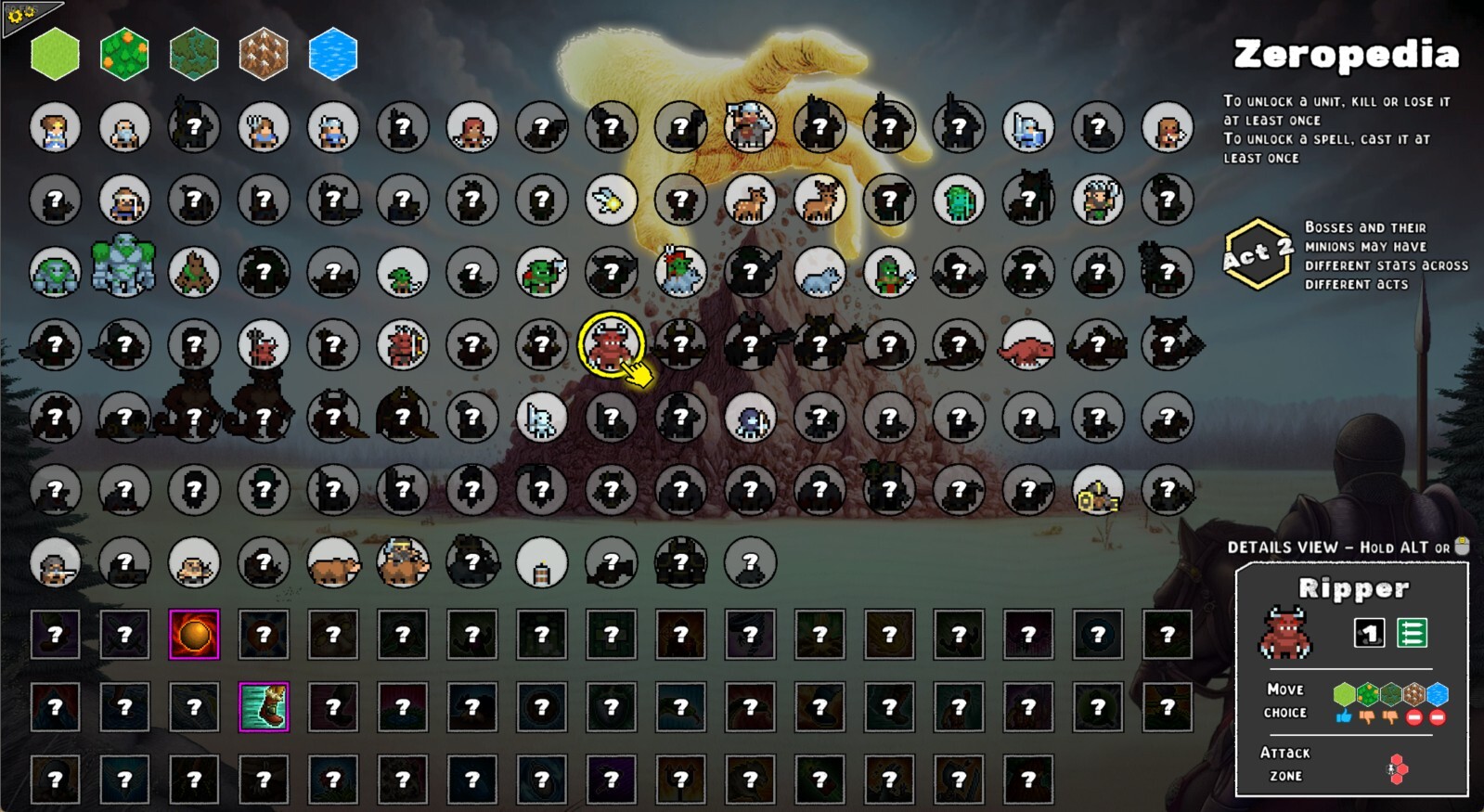 It's a bird, it's a plane, it's a BIRDOPLANE ZEROPEDIA! ːcool_seagullː Every time you kill/lose a unit, or cast a spell, it will be added to this magnificient tome of ancient knowledge. Sorry guys, I wasn't able to add every unit/spell you already killed/casted before this update. But some of them will be (the game will count every suitable quest and every achievement to fill the book)