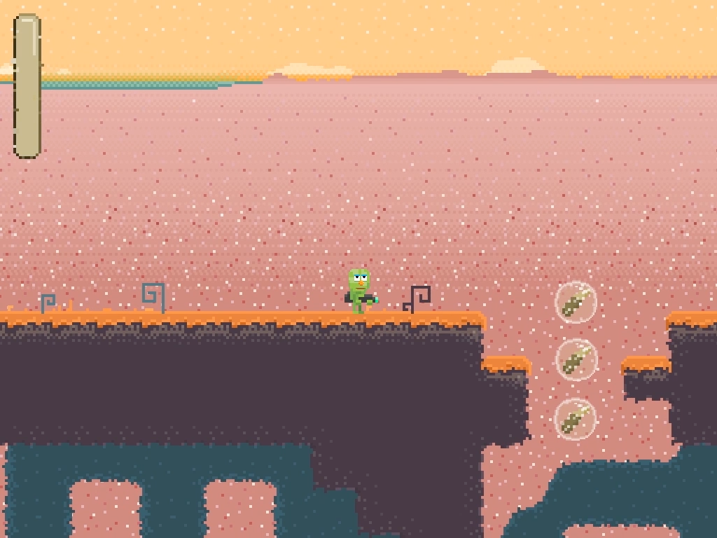 When you ground pound the buttons, you see the background transform to it's original colour. The percentage of the background you manage to clean up is tied in to a score multiplier at the end of each level, so there's hopefully an interesting balance to strike between maximising your score and managing your finite energy and health resources (which also come from the buttons).