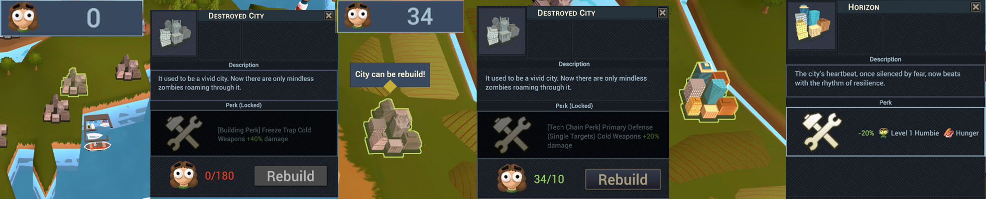 Restored Cities – Use cured humans to rebuild destroyed cities on the world map. Each restored city grants permanent perks that boost future missions and help speed up humanity’s recovery.