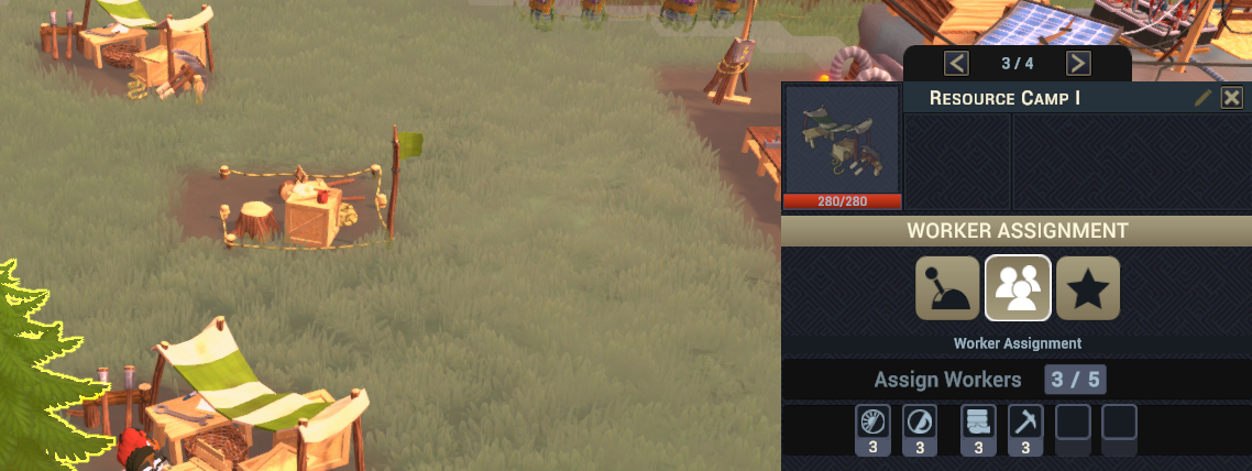 Worker and Building Type Cycler You can now cycle through existing workers or buildings of the same type at the top of the open info box. This gets introduced mainly to improve gamepad usability, but is also helpful for keyboard and mouse controls. It also shows the total amount of the building type, which can be quite useful to get an idea how many resource camps you have scattered across the map.