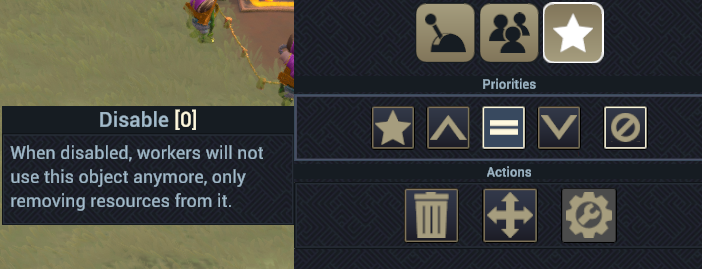 To make the tabs UI system a bit better to handle with keyboard and mouse controls, you can now trigger the shorcuts of inactive tabs. This is mainly useful to click a building and hit DEL or 7, 8, 9 and 0 for the respective actions of deleting the building, changing their priorities or disabling/ enabling it. Before, you had to switch the tab for the shortcuts to work.
