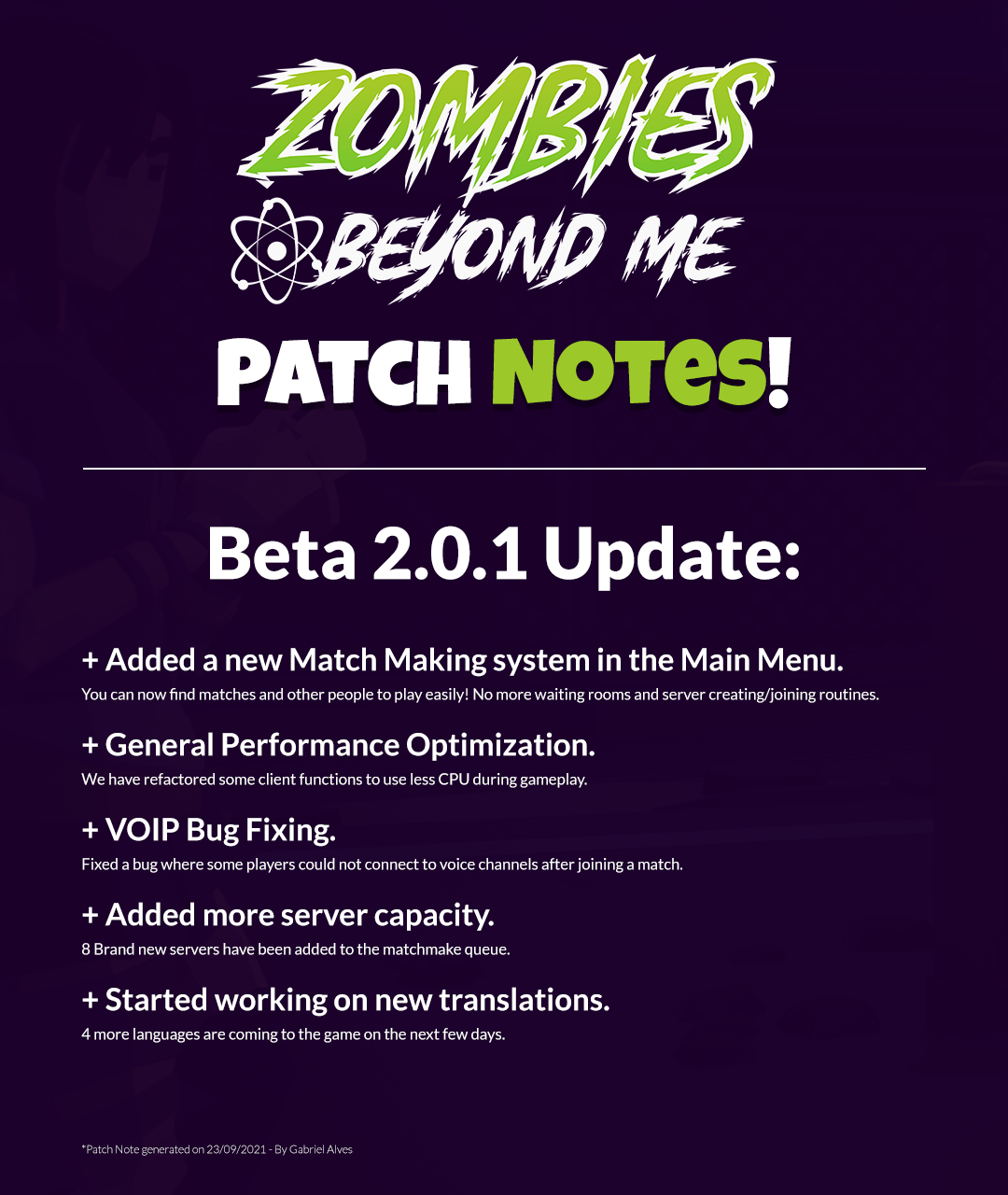In the first days of Zombies Beyond Me with the public we heard and read feedbacks from several players (including, their videos and livestreams). Based on this, we decided to implement some new systems to help you find matches faster and more automatically, without the need for creating/searching for servers.