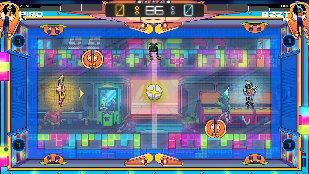 A new action has replaced the old Parrys (which are now known as Blocks). To perform this new Parry you press the melee button exactly at the moment that a ball is in a small area in front of you and travelling towards your side of the field. Instead of doing a melee you will automatically do a Parry causing the ball to gain some power & aura and immeditately deflecting it in the direction your aiming with minimal pause. This move is risky as if you miss the parry you might miss also meleeing the ball if it's travelling fast, and you have less time to aim. However, due to it's very quick turnaround, it can be a deadly surprise, especially on balls in a hyper state!