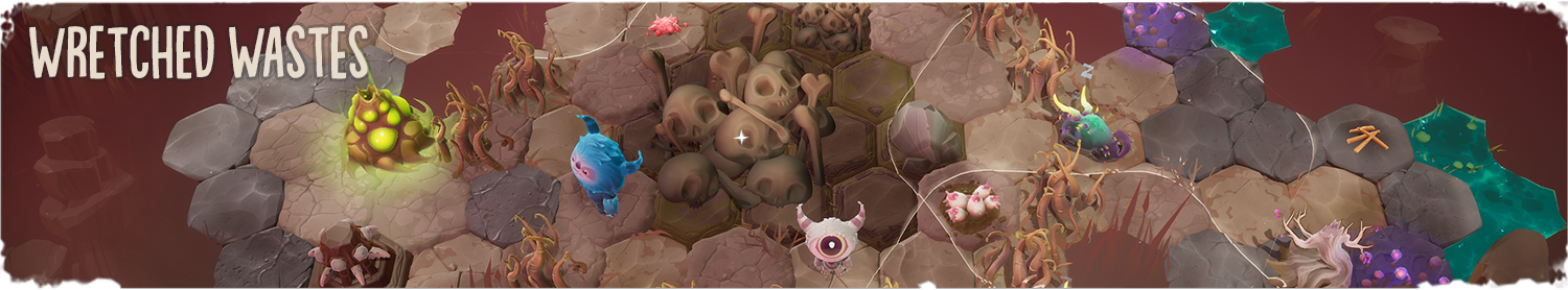 Wretched Wastes This bone littered and poisoned wasteland is scarce of water and seems to be especially interesting to the Underflock. The home of large beasts and the deadliest bugs.