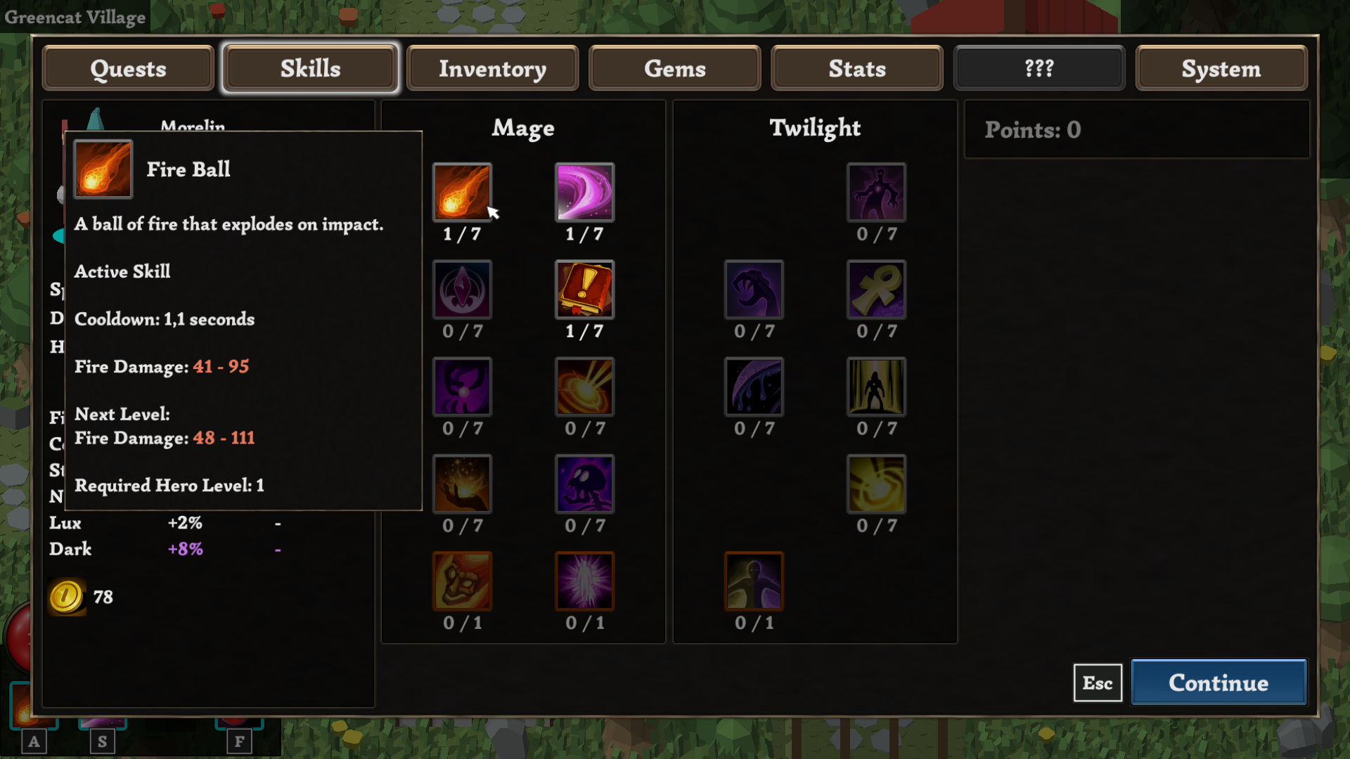 It's sometimes easy to miss that your cat hero has skill points left or that you've just found a new gem. This version introduces pause menu notifiers for all kinds of stuff. Please give feedback which notifiers are helpful and which are annoying. :-D